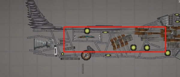 需要注意的是,这种不稳定的结构必须加装支柱——也就是机头中间的长铁块,将其设置为无重力且不碰撞的状态,再连接到机头外壳就可以了。