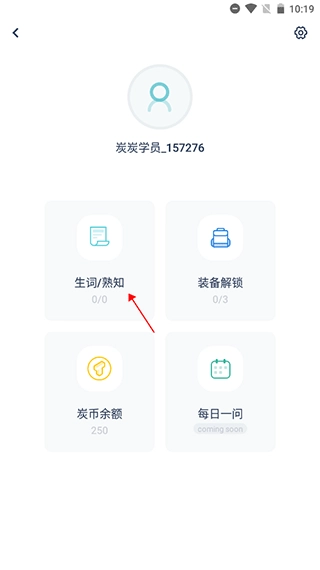 在进入我的界面后点击【生词/熟知】功能。