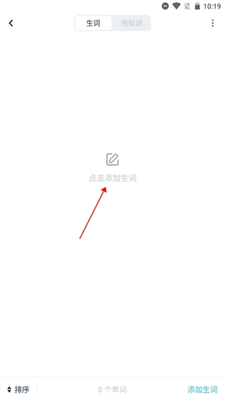 进入生词界面后,点击中间的【添加生词】按钮。
