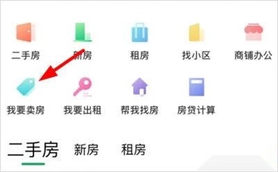 进入首页后,在该页面中找到【我要卖房】功能。