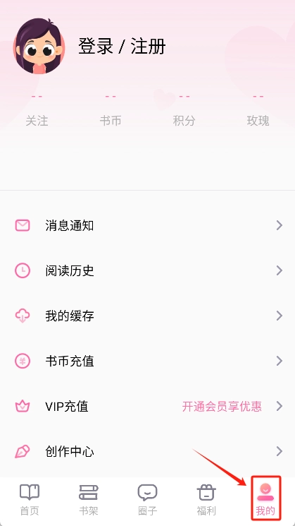 轻点屏幕右下角的【我的】图标,就能进入个人中心页面。