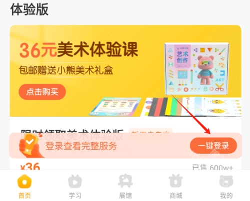 打开小熊美术课程,点击【一键登录】