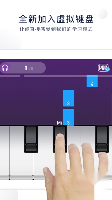 应用内配备了学习动态数据统计系统,借助勋章激励机制来提升学习积极性,还提供了和其他用户的PK功能,使学习钢琴的过程趣味十足,不再感到孤单。