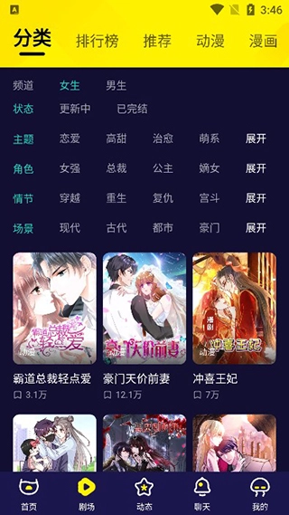 这里面的分类相当丰富,总裁、古代、穿越等类型一应俱全,大家可以自由挑选。