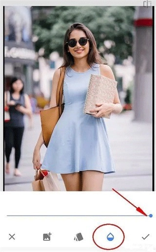 点击第三个不透明度工具,把不透明度调至最大,只需将滑块拖到最右端,接着点击√确认图片修改,就能回到主菜单。