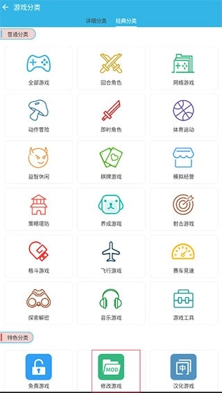 找到特色分类专区就能看到修改游戏啦