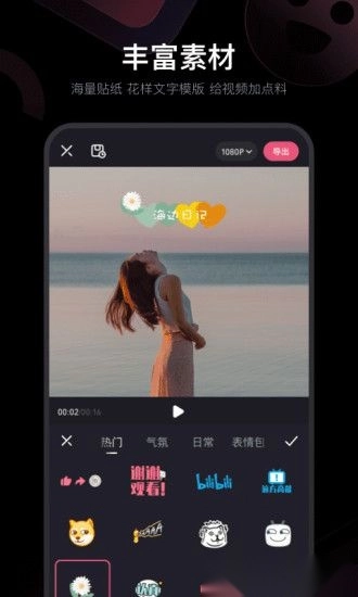 海量贴纸,花样文字模版,给视频加点料!