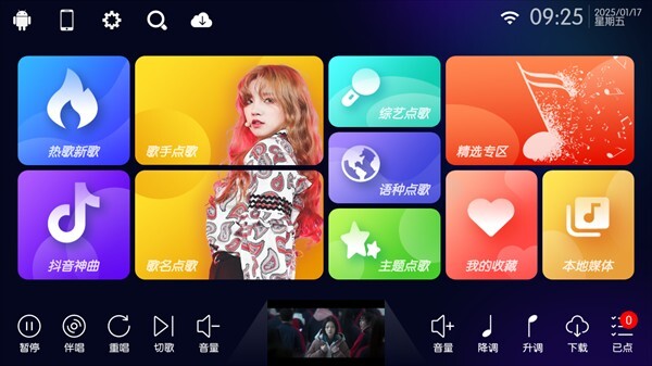 打开这款软件后,映入眼帘的是简洁清爽的操作界面,各类丰富的点歌功能都汇聚于此。