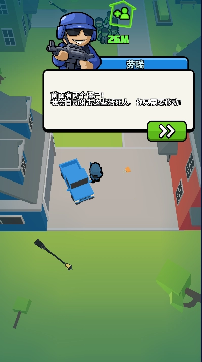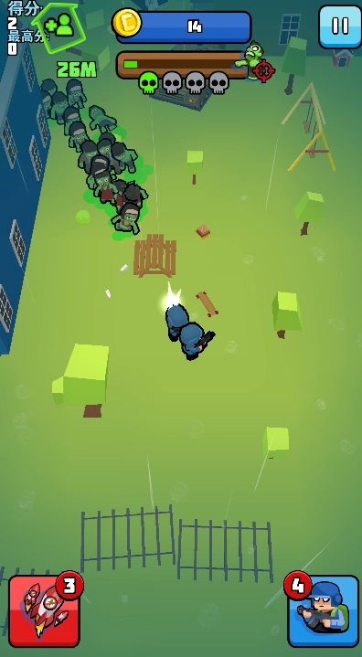 2、进入游戏后,你只需操控角色移动,角色在射程范围内遇到僵尸时会自动发起攻击。