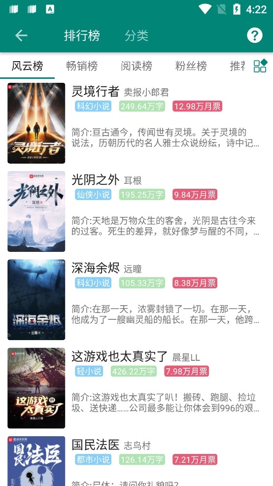 这里有很多精彩的书籍,分类也十分丰富,无论你想看什么类型的书,都能在这里找到。要是遇到感兴趣的,可千万别错过,赶紧去追书吧!