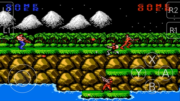 2、进入关卡后,左下角的按钮用于控制移动,右下角的“X”和“Y”键对应开火攻击功能,“A”和“B”键则是用来进行跳跃躲避操作的。