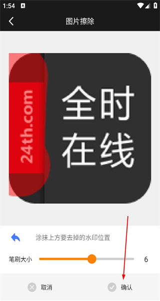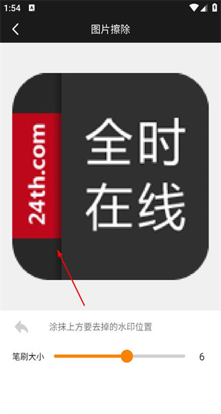 进入图片擦除界面后,根据提示用画笔涂抹需要清除的水印区域,还能调整笔刷尺寸来完成擦除动作。