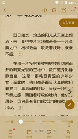 在阅读界面,既能调整阅读设置,也能便捷地将小说添加至书架。