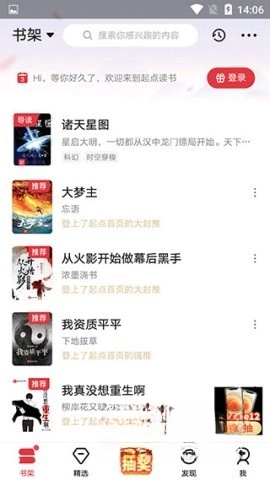 打开应用后,底部导航栏中的“书架”“精选”等功能选项清晰可见。用户若想找到心仪的小说,可直接通过页面上方的搜索栏进行检索。