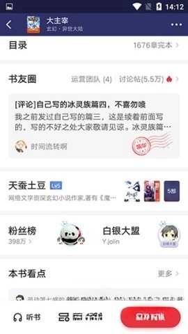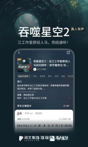 在书籍详情页面,你能看到小说简介、章节目录等内容,还可以选择听书功能或者把书籍加入书架。