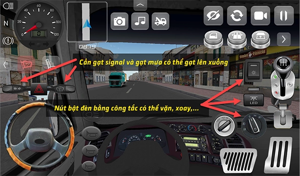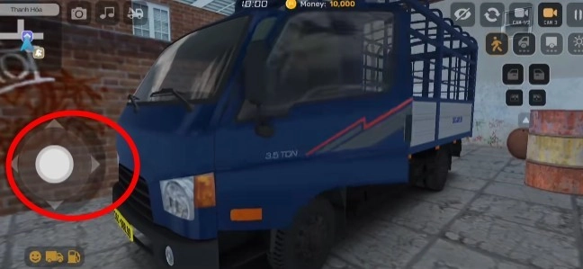 4、借助虚拟按键的上下左右方向操作来环顾四周,以此观察卡车周边的环境。