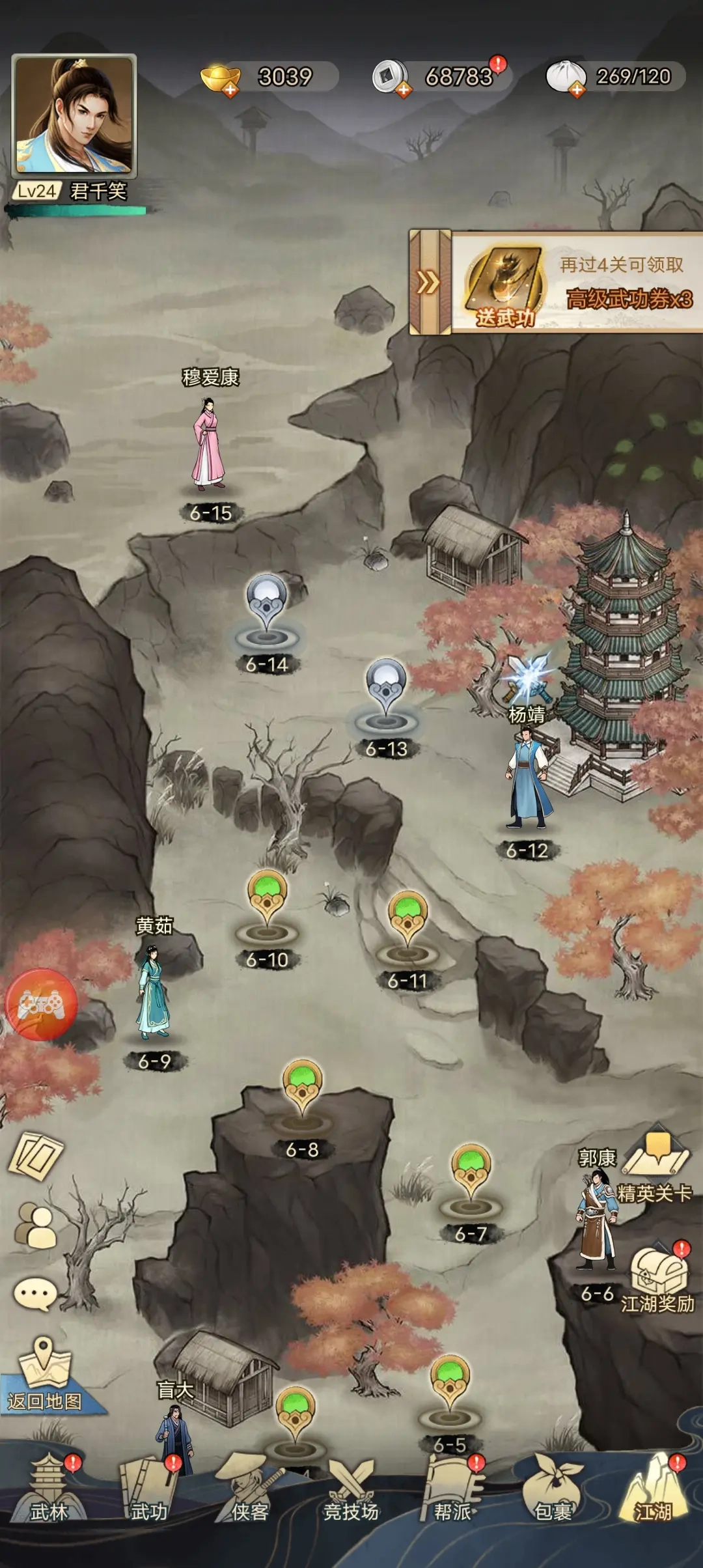 武林大会:再次强调使用最强阵容,快速战斗。