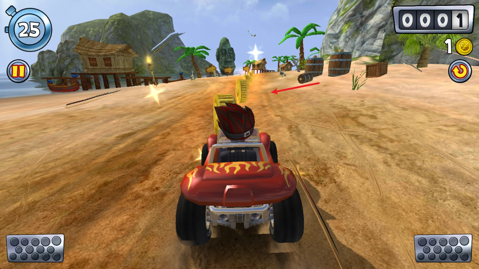 驾驶沙滩车一路向前,灵活避开海鸥、椰子树、篝火堆等接连出现的障碍,尽情体验极速冲刺带来的畅快刺激。