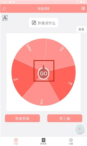 用户进入轮盘定制功能后,系统会直接生成一个随机轮盘。