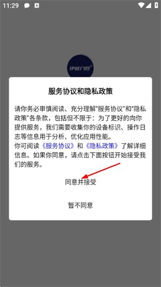 进入伊枕入梦后,点击同意并接受,进入登录页面。