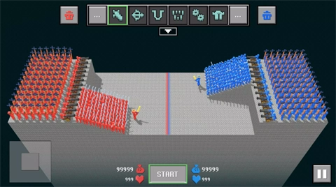 布娃娃战争模拟器是一款依托真实物理模拟效果打造的策略游戏,玩家能选择扮演红色或蓝色的布娃娃角色,通过添加角色组建大规模战术战斗场景,体验由具备各异技能的滑稽面孔角色构成的史诗级部队,尽情享受这场最具趣味性的战斗模拟。