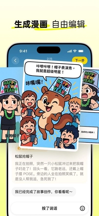 在松果时刻,做生活的漫画家。生活中的每个瞬间、每件事与每个想象,你只需一张照片加一段描述,便能创作出精彩的漫画。从点滴日常到奇思妙想,都能通过「松果时刻」的全新形式生动展现。