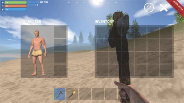 1、进入关卡后,我们的角色处于空包状态,身上仅携带一个火把和一块石头,随即就能开启属于自己的生存冒险。