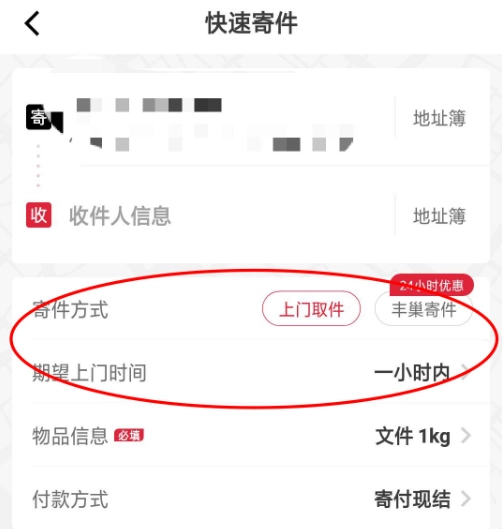 在快速寄件页面,精准填写寄件人与收件人的各项信息。在页面底部找到“寄件方式”选项,选择并点击“上门取件”就完成了。
