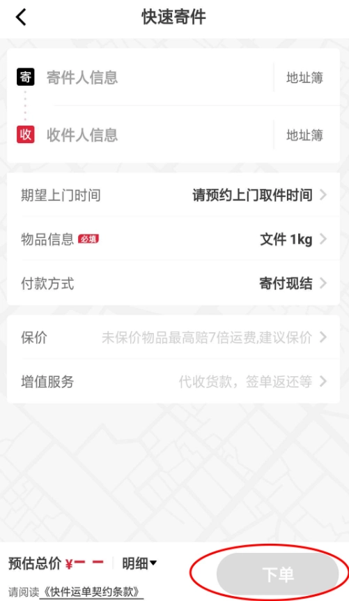 挑选好适宜的上门取件时段,接着点击“下单”按钮就能完成预约流程啦。