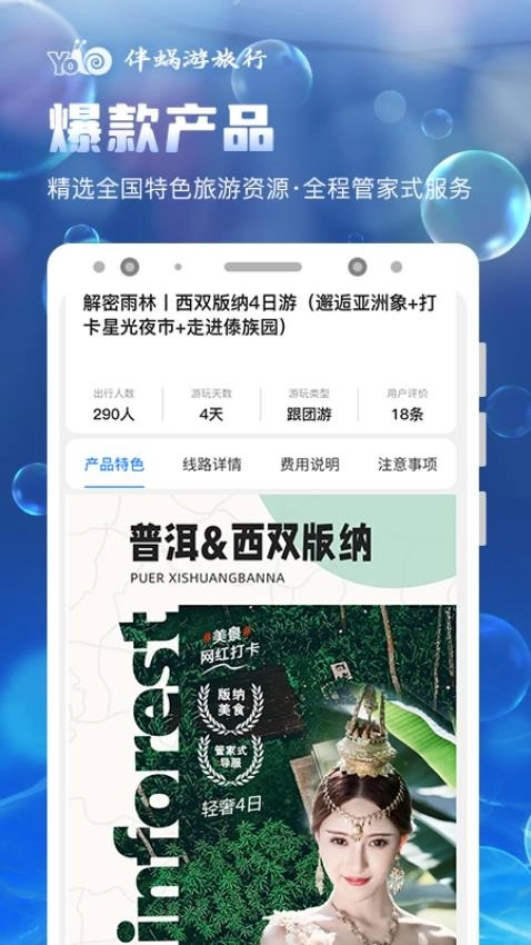 4.在线预订:伴蜗游旅行支持在线预订功能,用户能够直接通过应用完成机票、酒店、门票等产品的预订操作。