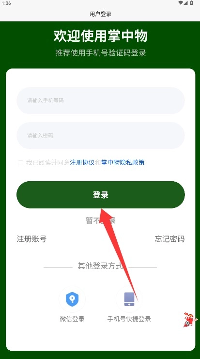 2、在登录页面填写手机号与登录密码,勾选同意相关条款后,点击登录按钮即可进入首页。