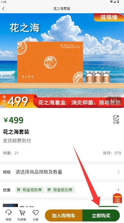 4、进入商品详情页面后,点击页面右下角的“立即购买”按钮,即可完成订购流程。