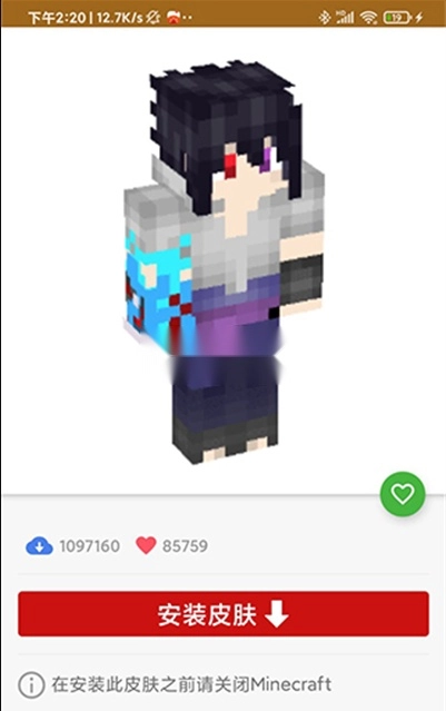 4、点击“应用皮肤”按钮,然后选择将其保存到“Minecraft PE”游戏中