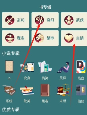 1、进入书籍专辑页面后,系统会依据相关内容对书籍进行分类,方便读者查找。