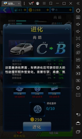 6、升级赛车需集齐足量配件与金币,通过短时间内的收集,可解锁兰博基尼、帕拉梅拉、迈凯伦等热门车型。