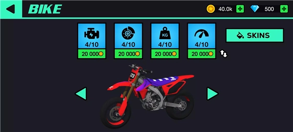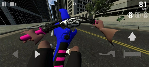 2、游戏操作同样简单,左侧按钮用于控制方向,右侧的↑按钮能让摩托车抬头,下方的两个按钮分别是刹车键和油门键。