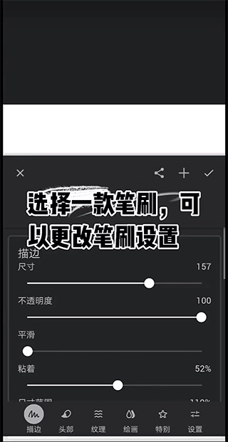 7、在进行描边操作的过程中,用户能够挑选一款笔刷来调整其设置,操作起来十分便捷。