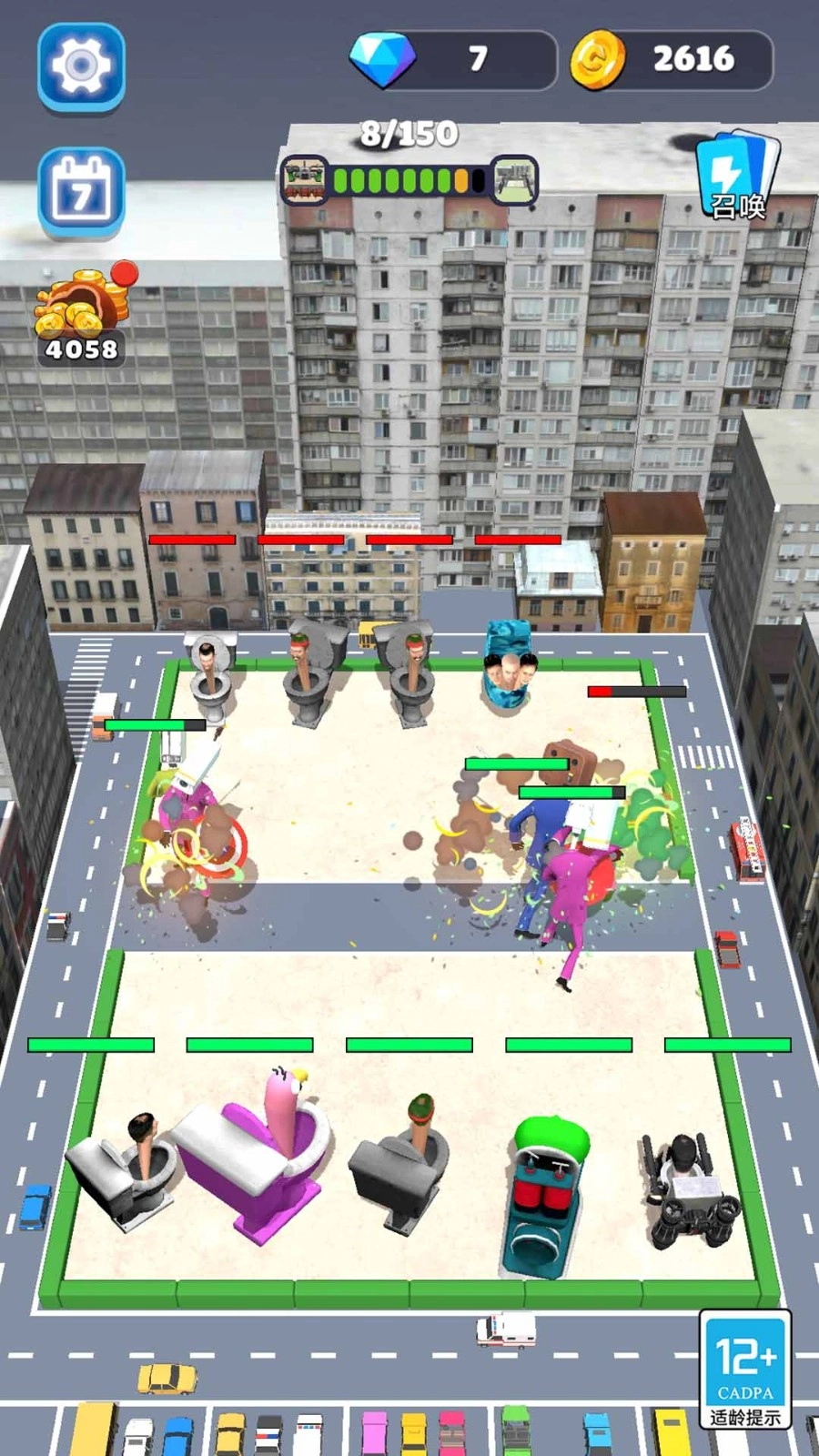 这是一段超有趣的合成内容,把所有马桶人都合成起来,让它们加入紧张刺激的战斗,然后不断去挑战新的关卡。