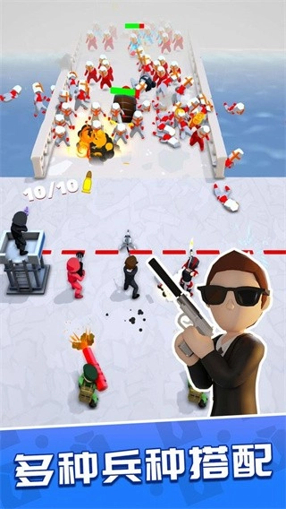 1、设计了简单休闲的复合玩法,玩家只需完成士兵角色的养成与强化,即可顺利推进关卡挑战,过程中基本不会遇到战力不足或武器装备方面的问题。