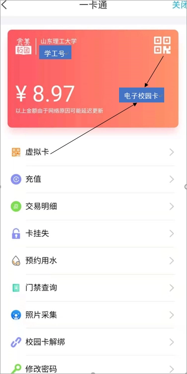 1、登录“山东理工大学”平台,进入应用页面后点击“一卡通”选项,