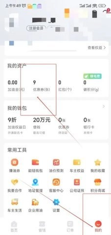 1.打开能链团油应用,进入“我的”页面,然后点击“优惠券”选项。
