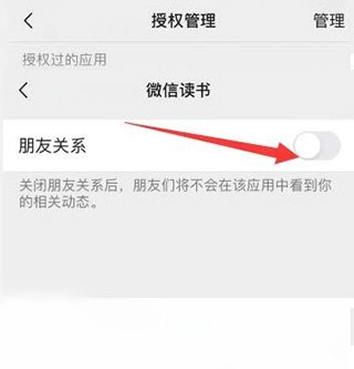 5.若想关闭微信好友在微信读书中的显示,可进入微信个人中心,依次点击“设置”-“隐私”-“授权管理”-“微信读书”,最后关闭“朋友关系”选项即可。