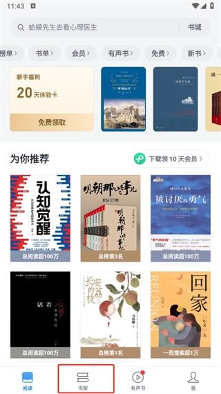 1. 我们要在魔趣网下载安装微信读书,接着打开软件登录账号,新用户能免费获取20天的新手体验卡。