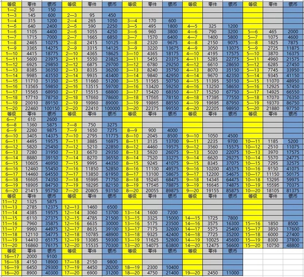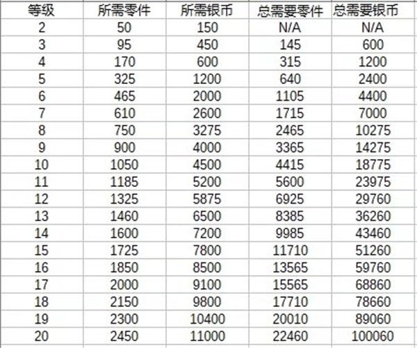 4、飞机升级学分碎片消耗一览