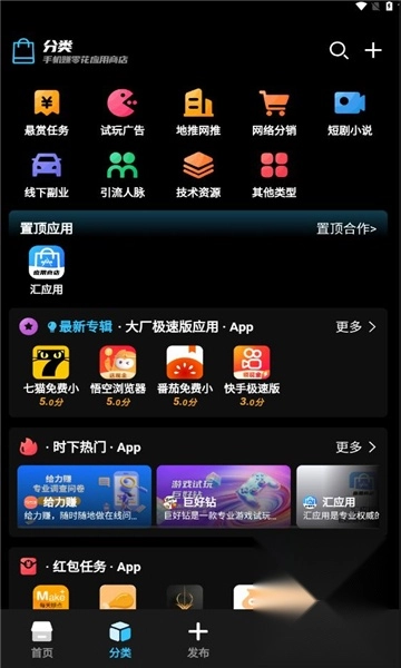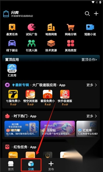 3、点击页面底部的“分类”选项,就能浏览到各类优质应用。
