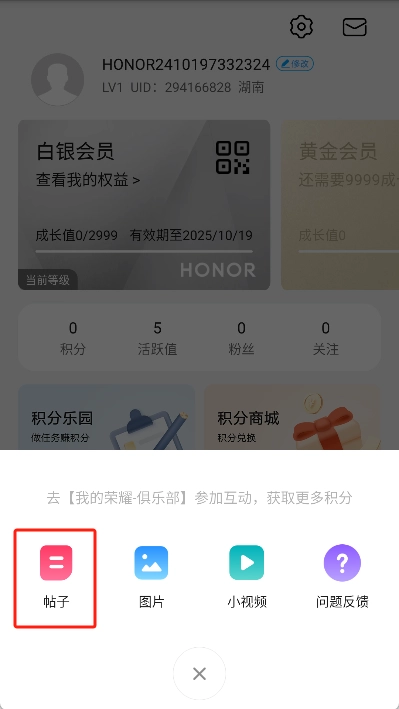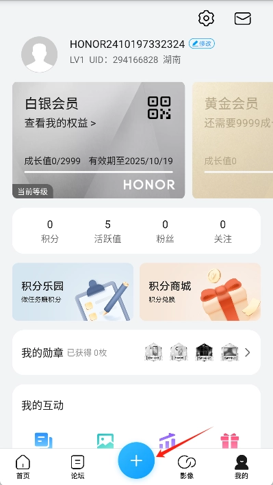首先要打开荣耀俱乐部,接着点击底部导航栏上的“+”按钮。