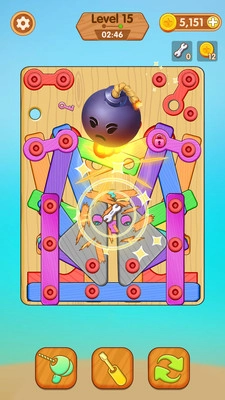 1、游戏运用拆解式的闯关模式,玩家在每一关都得通过动脑操作来拆除螺丝。