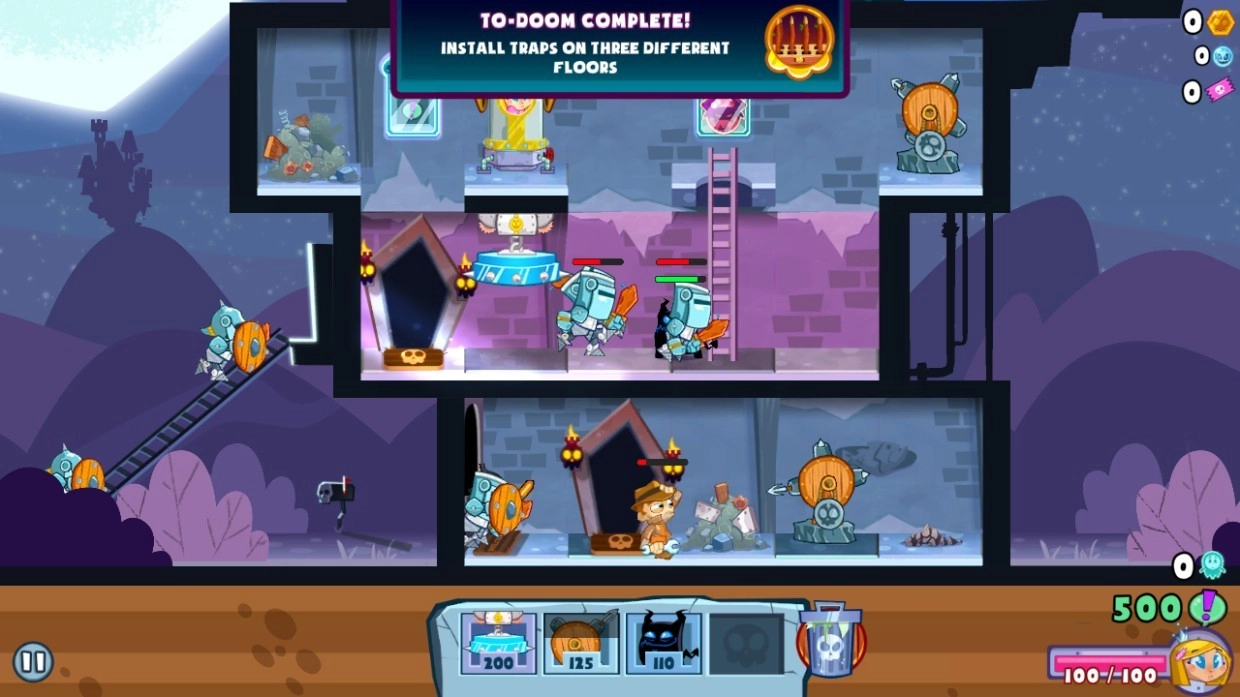 2、配备26种别具一格的陷阱与5类邪恶佣兵,可自由组合多样防御装置以助力消灭敌人。