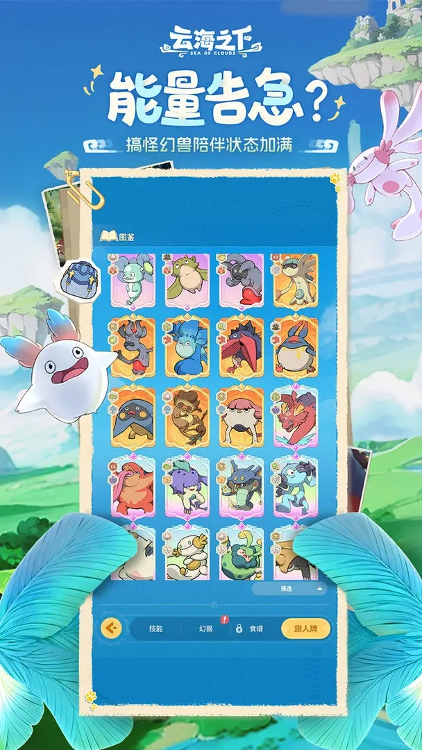 1、玩家能和搞怪幻兽结伴而行,旅途上不会再孤单,战斗也会变得更有意思。