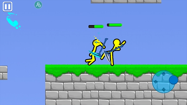 4、通过滑动摇杆操控火柴人发起攻击,率先让对方掉落的一方即可赢得胜利。